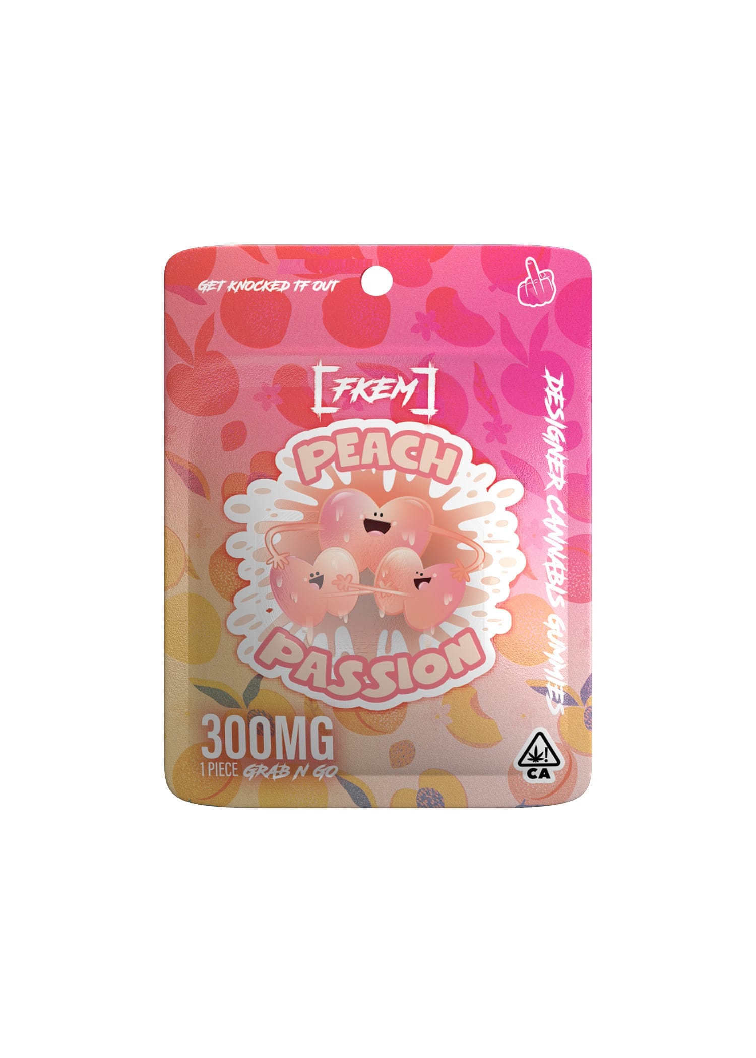 / FK / Gummy 300 mg / Peach Passion / HYBRID / singles / pk 50 / $2.75 ea.