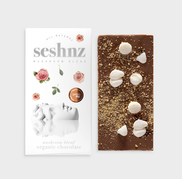SAMPLE__seshnz chocolate bar | mushroom blend | 10 GR | strawberry milk | pk 1 | $20 ea.